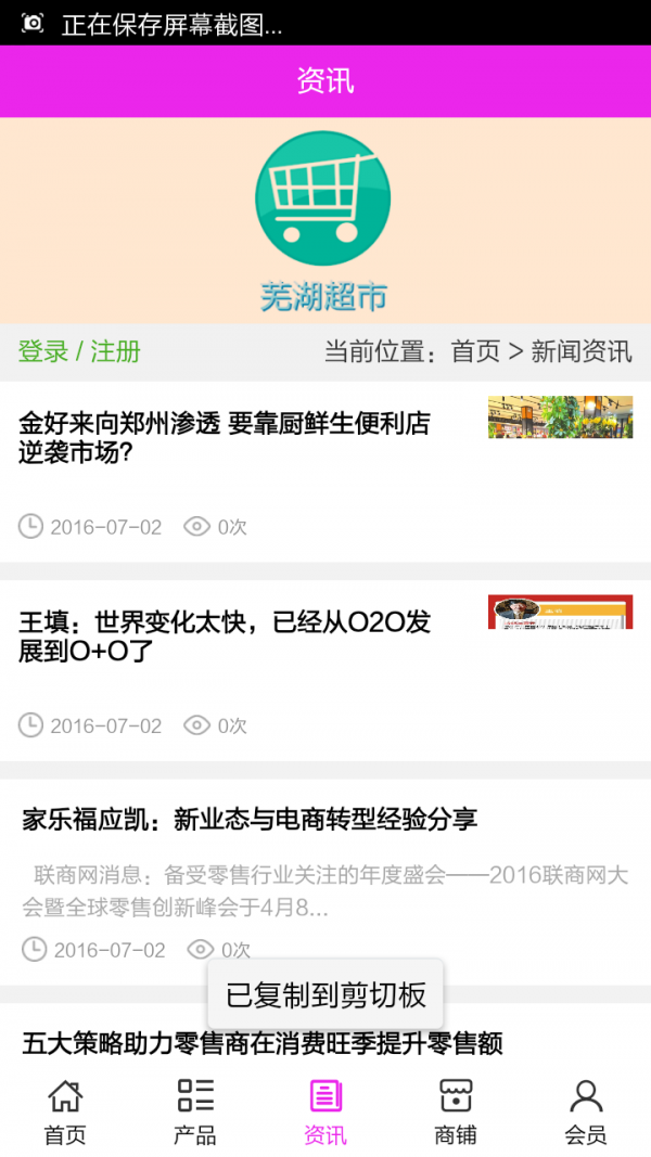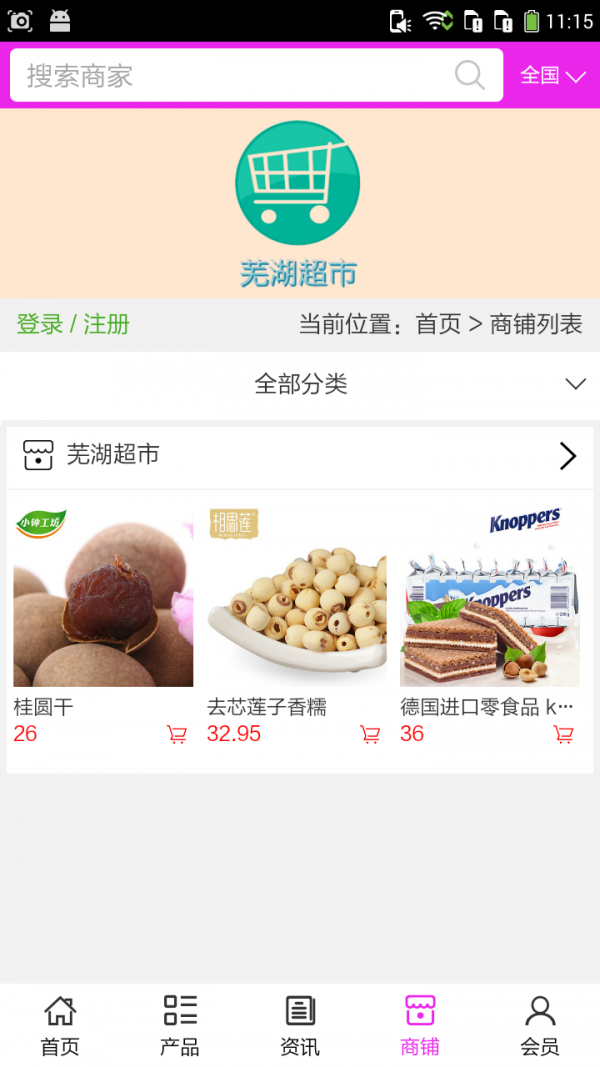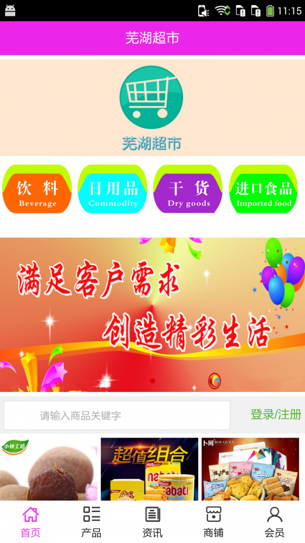 芜湖超市app不仅具备购物、查询订单、搜索商品、行业资讯和产品评价等常用功能,而且还实现了手机版特有的会员注册登录、广告位、招商开店等功能。目标是整合当地品牌商、生产商、经销商,为商家和消费者之间提供一站式解决案。