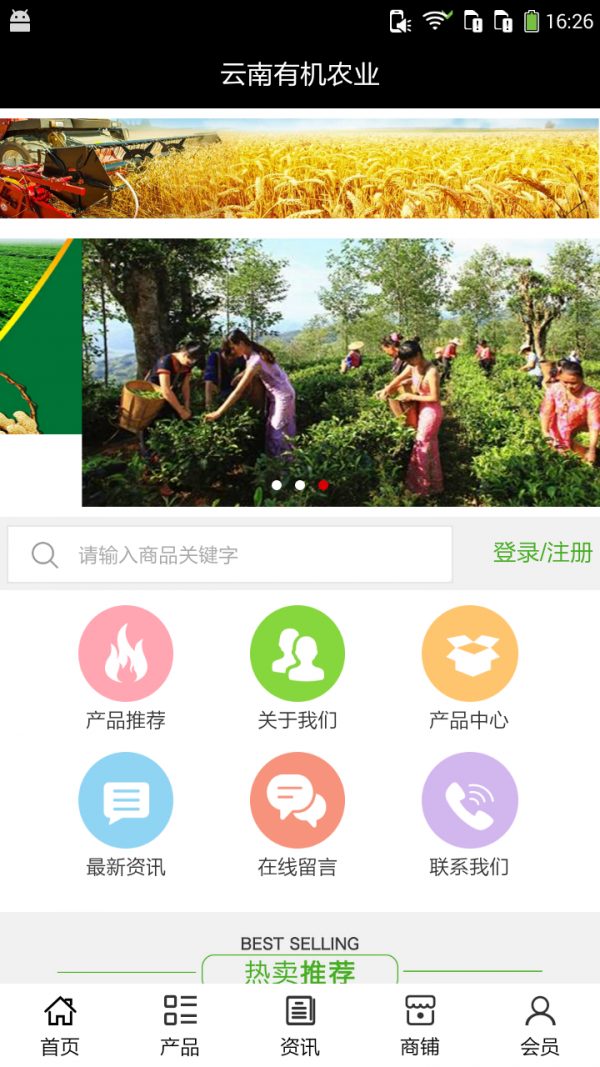 云南有机农业app不仅具备购物、查询订单、搜索商品、行业资讯和产品评价等常用功能,而且还实现了手机版特有的会员注册登录、广告位、招商开店等功能。目标是整合当地品牌商、生产商、经销商,为商家和消费者之间提供一站式解决案。