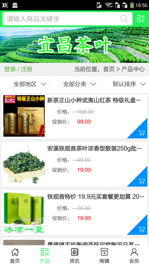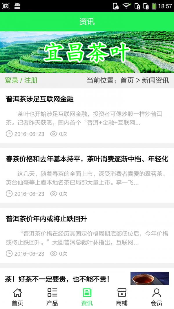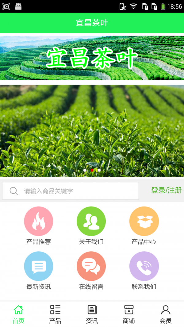 宜昌茶叶app不仅具备购物、查询订单、搜索商品、行业资讯和产品评价等常用功能,而且还实现了手机版特有的会员注册登录、广告位、招商开店等功能。目标是整合当地品牌商、生产商、经销商,为商家和消费者之间提供一站式解决案。
