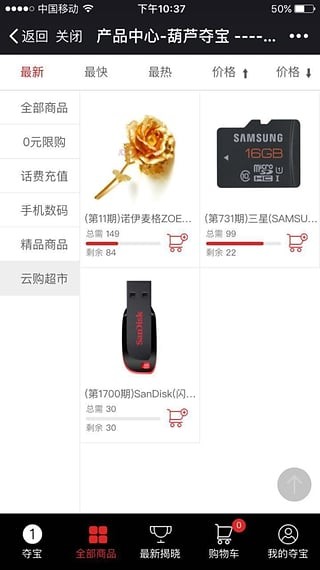 1、以云购夺宝、趣味限购为特色的专业B2C购物平台。