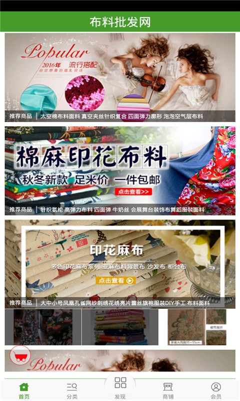 布料批发网app是一款针对布料批发行业的手机软件,为用户提供大量高端时尚的布料产品,在手机上就能下单购买,享受便捷购物体验!