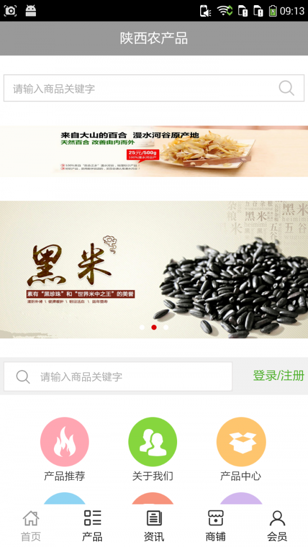 陕西农产品app不仅具备购物、查询订单、搜索商品、行业资讯和产品评价等常用功能,而且还实现了手机版特有的会员注册登录、广告位、招商开店等功能。目标是整合当地品牌商、生产商、经销商,为商家和消费者之间提供一站式解决案。