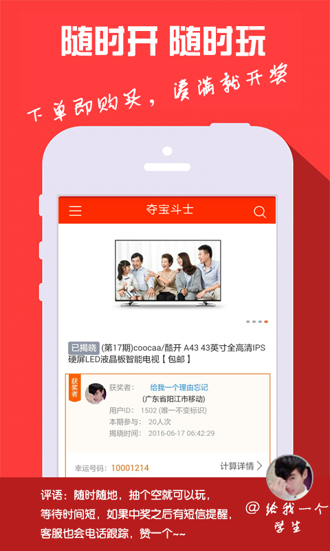一元搏一搏,单车变摩托;一元变土豪;只要一元,天天夺宝一切皆有可能!!