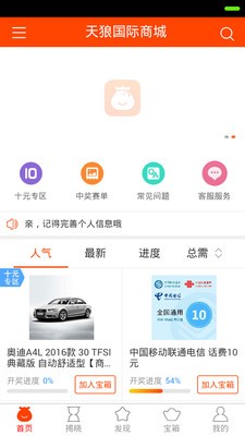 天狼国际商城app是一款手机购物软件,商品覆盖汽车专区、手机数码、家用电器、金银珠宝等类目,还有超值购物十元专区,尽享优惠购物!
