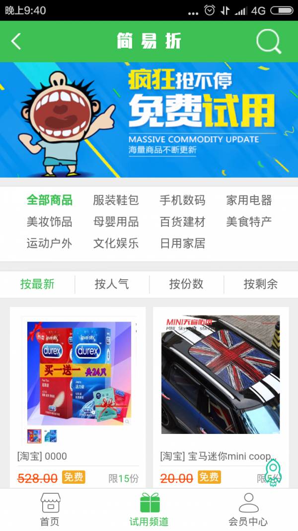 简易折,海量优质商品,试用购物不花钱。为数百万商家提升了品牌价值与影响力,是专业的试客分享中心。试,是一种生活态度,更是对生活的一种认可。