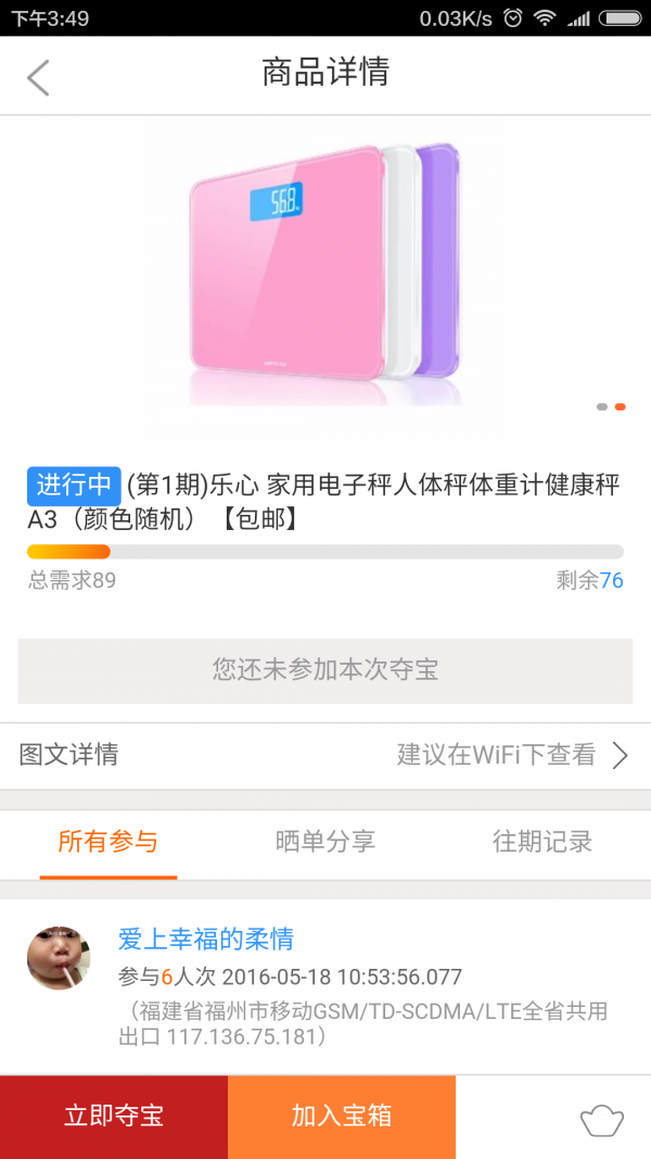 一块筹宝app是一款一元夺宝应用,用户可以在这里体验时下最流行的一元购服务,让用户可以只花一元钱来夺得想要的商品,体验超惊喜的购物服务。
