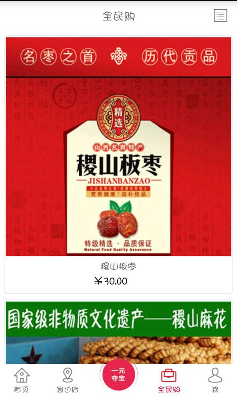 不要怀疑,只需1元就能有机会得到几元甚至上千远的产品,稷山夺宝给你的一切皆有可能!现在下载稷山夺宝,立即体验全新的一元购物。主要功能:购物、夺宝、周边店查询全民购物等。产品:手机数码、家电、日用百货、家装建材、美食等。
