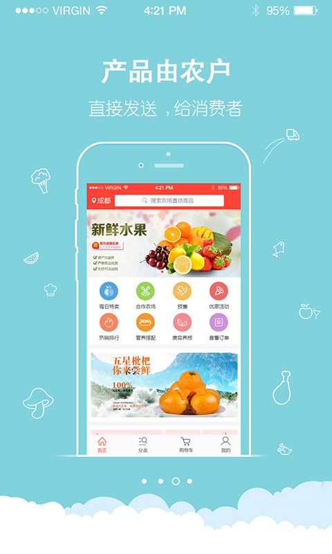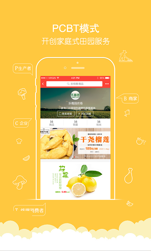 app主要是用于农副产品交易的手机商城,给生产者和消费者建立一个纯粹的交易空间。主要功能包括购物车功能,每日推荐,订单功能,产品预售功能,农场展示功能,优惠活动功能,商品溯源功能等。