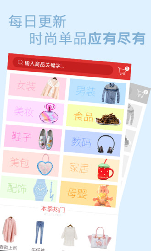 3、女装、母婴、郊游必备、化妆品、鞋包、数码、创意配饰、家居,应有尽有!