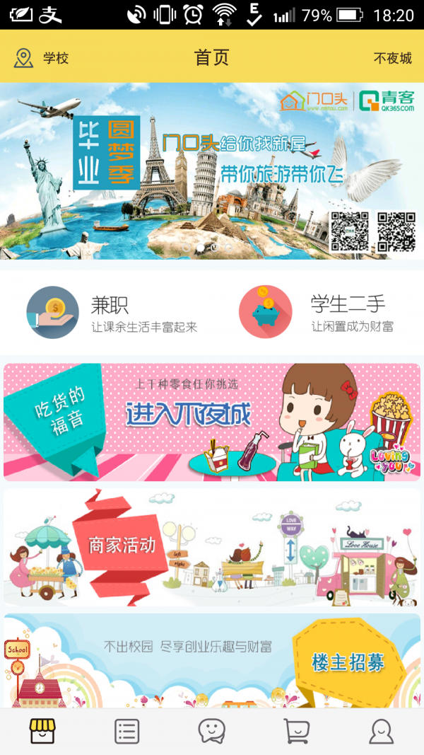 为更好解决在校大学生宿舍不想动身但是想吃零食的问题,门口头app应运而生,支持送货进宿舍,在校大学生的福音,是一个扁平的微社区社交平台!!