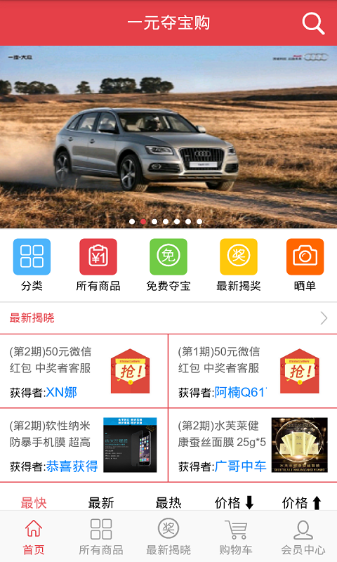 一元夺宝购是一个新型的互联网趣味活动平台,在这里你只要花一元就可能收获房子,车子,iphone手机等惊喜。有时候梦想的实现,只需要一元,你准备好了吗!全程公平公正可信。