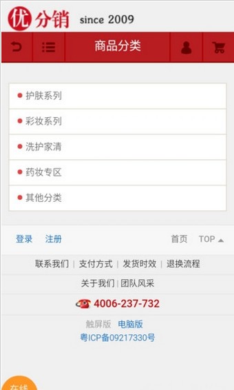 优分销致力于为广大中小卖家提供化妆品一站式采购服务,包括:优质货源、物流运输、售后服务、推广与营销培训等。截止2015年底,我们已经为超过8000个网店、1000多个独立B2C网站、几千个中小微商以及实体店、连锁店提供了一站式货源服务。我们的客户每天都在成倍增加,老客户也越来越多,越来越多的网店掌柜和实体老板选择我们做货源供应商。优分销APP可以方便所有从事化妆品创业的人,随时随地查询产品行情,查阅商品最新资讯,学习化妆品真假分辨,可以根据店铺销售情况随时下单采购。