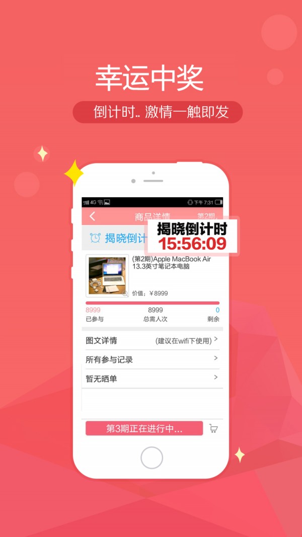 精品活动app,一元就购,惊喜无限!。精品活动app就是把一件商品平分成若干等份出售,每份1元,当一件商品所有等份售出后抽取一条幸运者,改幸运者既可获得此商品。 精品活动app是深圳前海创品网络有限公司旗下的专业P2P购物平台,在精品活动app只需1元就有可能买到一件商品。