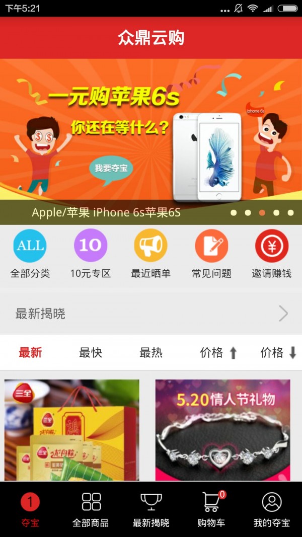 众鼎云购app是一款一元购应用,用户可以在这里体验众筹购物的实惠,只花一元钱,就有希望抢购到喜欢的商品,让购物更实惠。