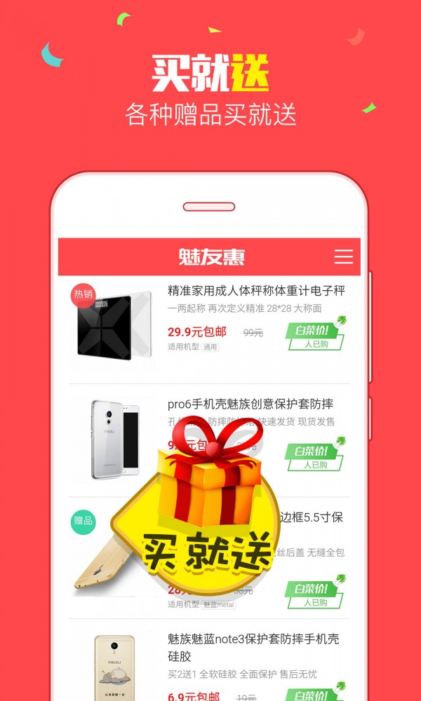 魅友惠app是一款电商购物平台,精选优质低价商品,让你用超低价格买到好货,还有各种赠品随意送,就是这么任性,你还在等什么,快来下载吧!