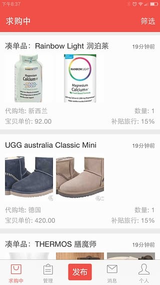 是国内第一家海外旅行者带补贴购物平台的接单应用
