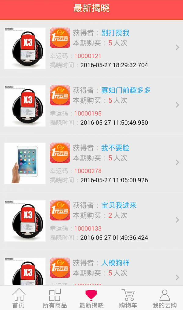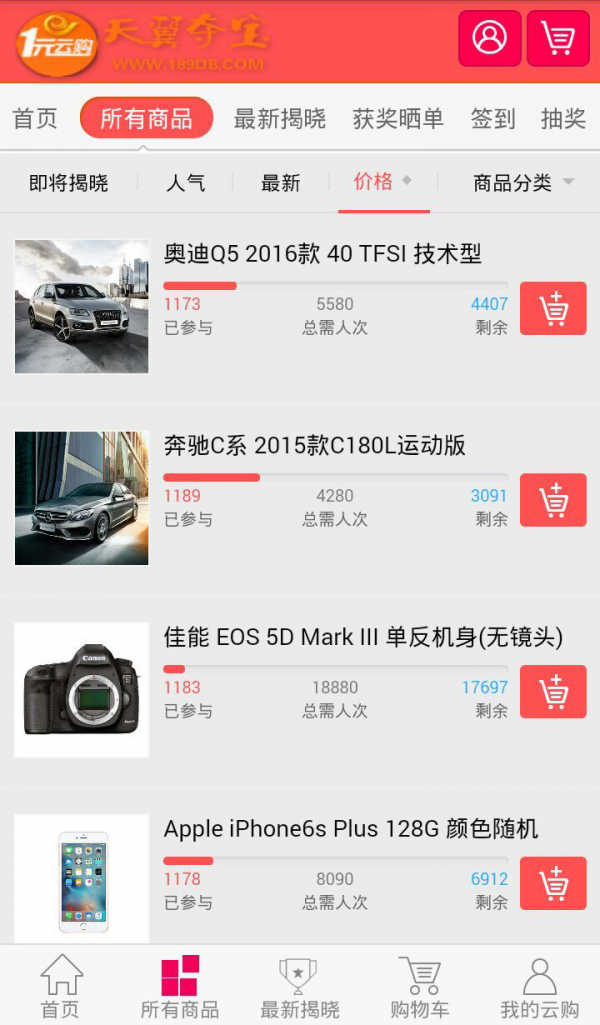 TT夺宝一种新网购模式,只需一元钱就有可能买到一个商品。TT夺宝啦把一件商品平分成若干“等份”出售,每份1元,当一件商品所有“等份”售出后抽出一名幸运者,该幸运者即可获得此商品。