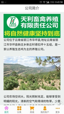将自然健康坚持到底。---天利养殖是一款与养殖有关的应用软件,其主要服务包括家畜、家禽养殖、收购、销售。让您在繁忙的都市生活中,不用去市场上购买就可以吃到原生态的食品。