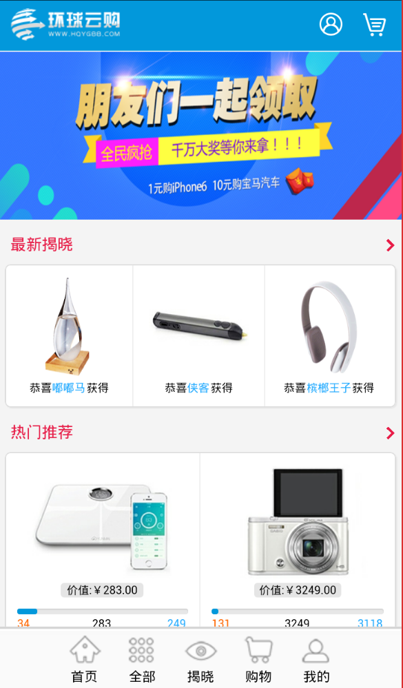 环球云购app是一款手机云购商城,提供海量优质商品,满足用户购物需求,只需1元就可能买到一件商品,快来下载吧!