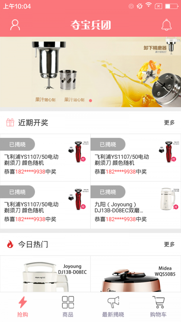 夺宝兵团app是一款电商购物应用,为用户提供时下最流行的夺宝购物玩法,让用户轻松参与众筹购物中来,只花一元钱,夺得惊喜大奖。
