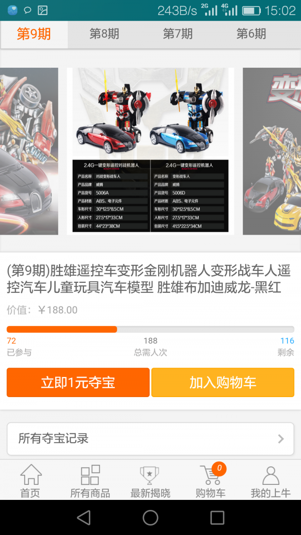 上牛夺宝为顾客提供一种新的购物模式,全新刺激的购物体验,一元有可能买到你想不到的商品,软件内商品中内齐全,多种购物模式供你选择,给你不一样的体验,赶紧来加入吧!