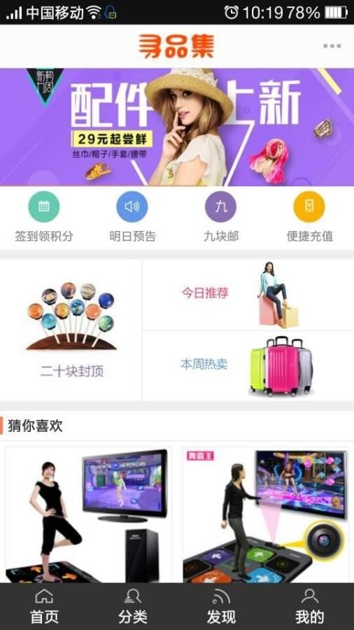 1、寻品集是一款导购商品应用,精选各大平台打折促销商品;
