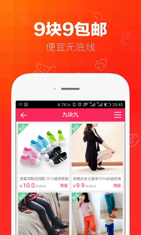 服饰、居家、母婴、美食、鞋包、美妆、数码电器和文体等爆款商品天天特价9块9包邮!低价折扣,包邮妥妥滴。淘宝、天猫商品直接改价,低价还包邮!天天特卖特价,您值得买,值得拥有!不怕全网比价,我们只做最低!