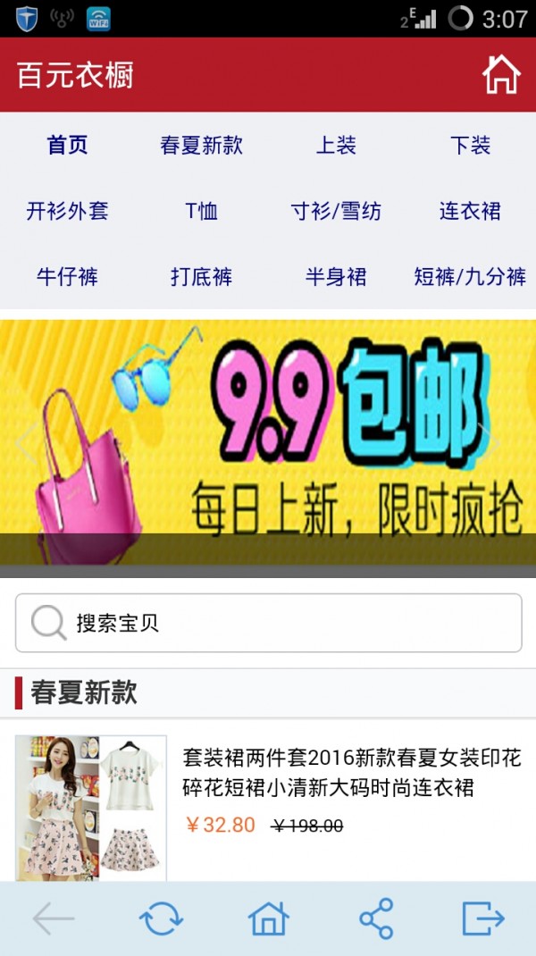 百元衣橱app,你的随身衣橱,内置上装,下装,体恤,雪纺衫,连衣裙,开衫外套,半身裙,牛仔裤等多个板块。让你轻松找到自己喜欢的款式。所有商品均在百元上下,低廉的价格,高端的享受,让你美丽随心。
