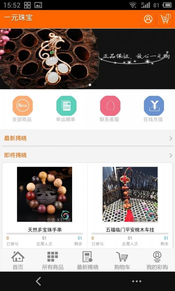 一元珠宝app是七彩福宝网络科技有限公司旗下专注于珠宝配饰领域的众筹B2C购物平台;一元珠宝app依托位于河南省镇平县的全国最大的珠宝玉石集散交易中心, 秉承优质商品、秩序选购、多重保障、无忧趣味、共通发展的经营理念,力求为广大消费者打造一个面向珠宝配饰的高品质的网上购物商城。