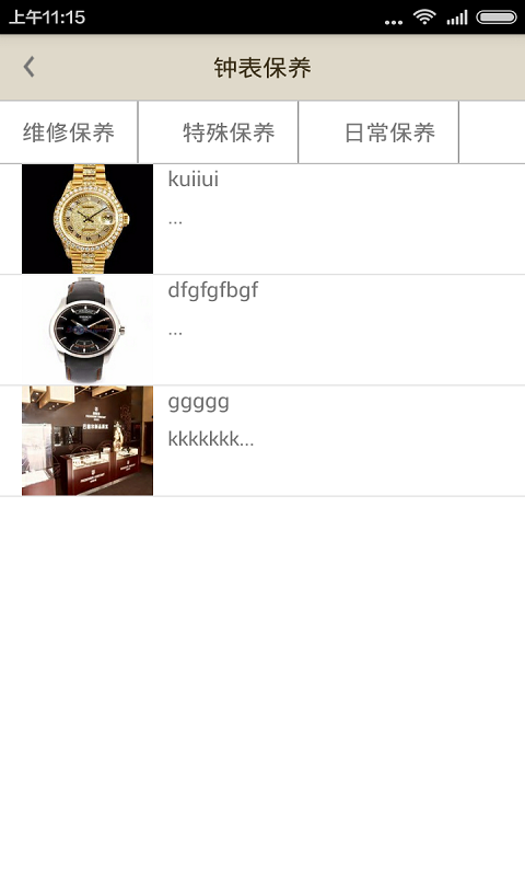 软件用途:关于手表和钟表的一个电商综合平台。既有销售也有维修服务。