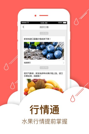 微农云商是一款水果采购服务平台,云集了各精品批发市场货源,并联合各水果批发厂商和产地经销商,为用户提供优质的售前售后服务,保证新鲜果,赚钱果,坏果换新,烂果包退。