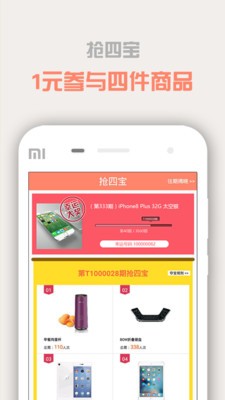 偷你妹是一款全新模式的网购平台,商品丰富类目齐全,开启抢四宝模式,只要一元就能获得四次中奖机会,比一元夺宝更疯狂,每天都有免费红包领取,惊喜多多,给你全新的网购体验!