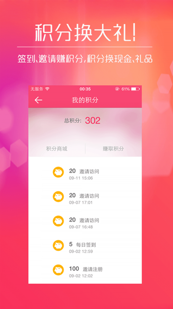 2、积分换大礼:签到、邀请赚积分,积分换现金、礼品。