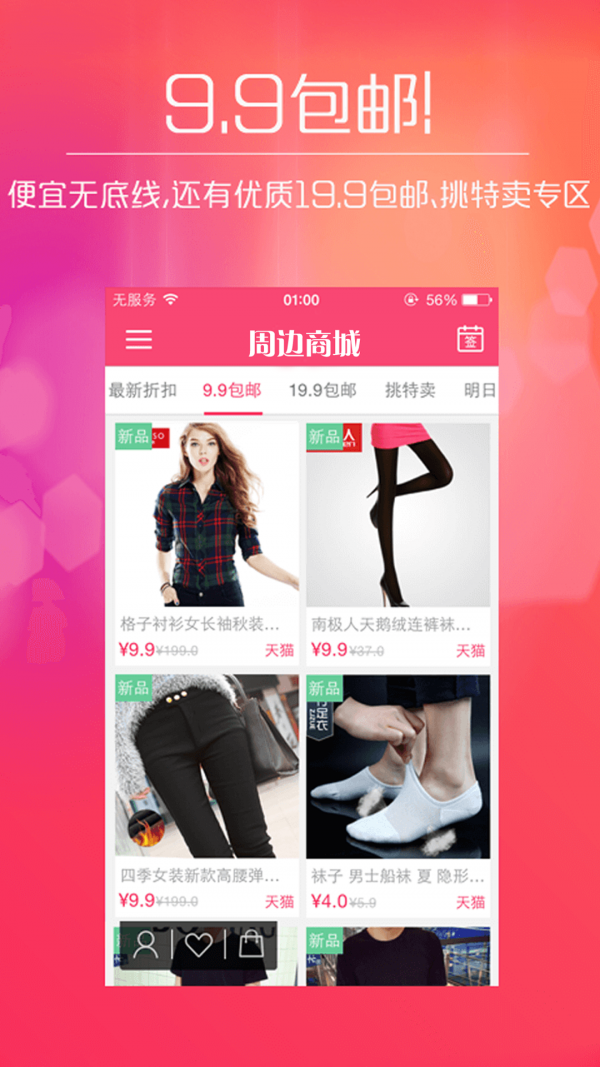 1、9.9包邮:便宜无底线,还有优质19.9包邮、挑特卖专区。