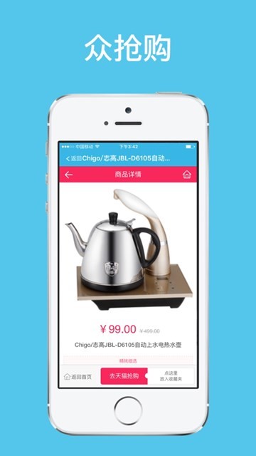 众抢购是一款掌上购物软件。众抢购app每天为您精选海量来自淘宝、天猫等商城的特卖商品,你想买的在这里都能找到,而且价格低到你无法想象!