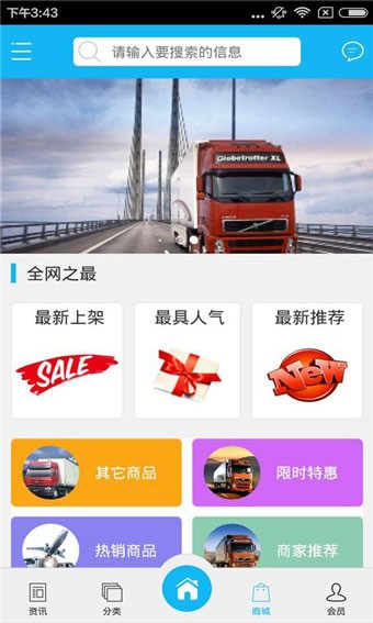 大件物流网门户网app是款集资讯阅读和线上购物为一体的手机app,帮助商家及时了解行业代理商机、供求信息和招聘人才,让用户便捷的了解商品详情,在线选购商品等。