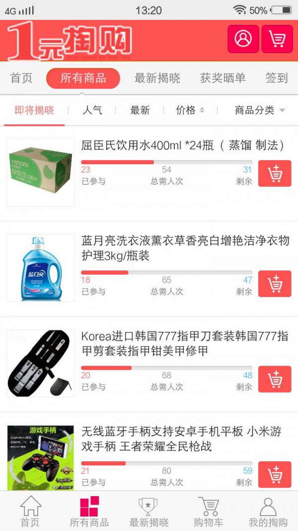 一元掏购app是款网络购物应用,是福州叁拾叁度文化传播有限公司打造的1元购平台。在这里一元掏购app用只需花费1元就参与价值上千、上万商品的抢购活动中。还等什么,还下载一元掏购app,加入抢购吧!