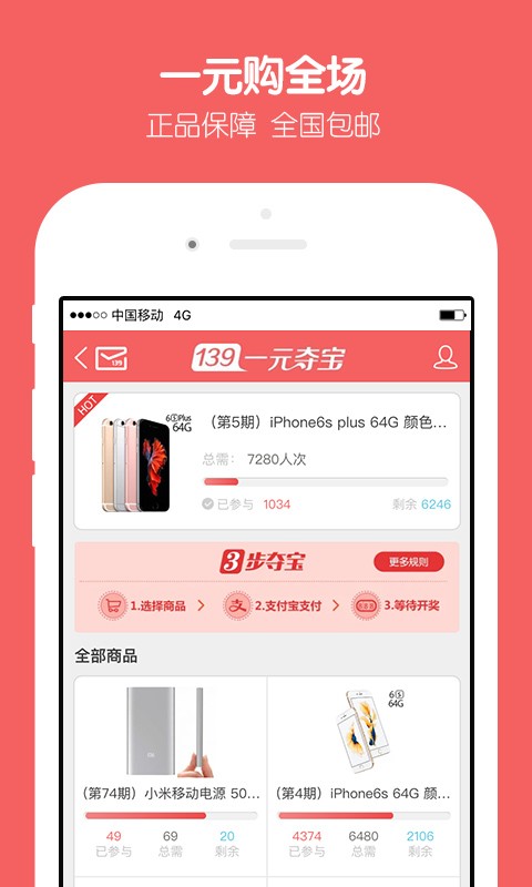 139一元夺宝app,一个惊喜不断的众筹购物方式在一元夺宝,您可以选择自己喜欢的商品,只要1元就可以实现获得潮流正品的愿望 100%正品保证,全国包邮!
