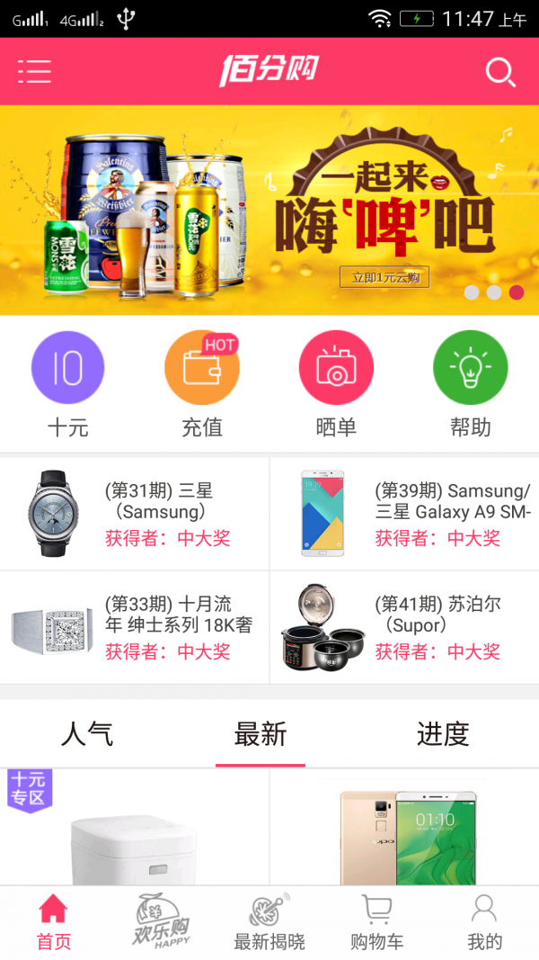 佰分购app是一款电商购物应用,佰分购app为用户提供新潮的一元购物玩法,让用户只花一元钱购物,数码家电,应有尽有,让用户体验众筹购物带来的实惠。