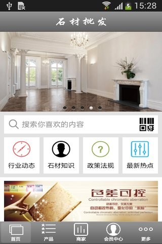 石材批发是一款集资讯移动和线上购物一天的手机app,在这里用户可查看石材知识、石材行业动态和政策法规,以及在线选购石材产品等。
