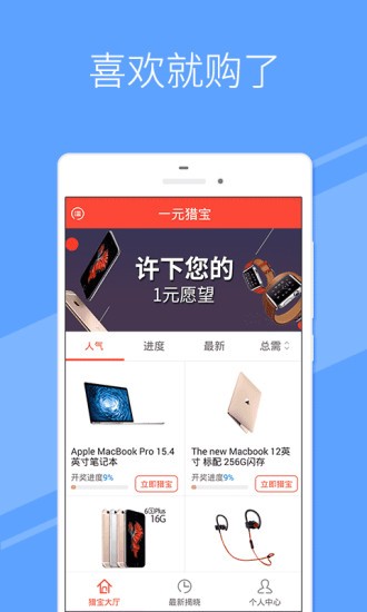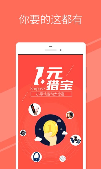 一元猎宝app是一款网络购物客户端应用,一元猎宝品类齐全,只需用小零钱就可以猎的你喜欢的物品,给您不一样的购物方式,快来下载体验吧!