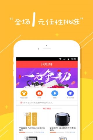 闪电夺宝app是一款网络购物应用,是个1元购销售平台。一块钱在今天还能买点啥?大概只能在柴米油盐的生活中,找到有限的答案。然而在闪电夺宝,一块钱对应的却是一种疲惫生活的英雄梦想。一种梦想,乃至千万人助力,在互联网的今天,谓之众筹。