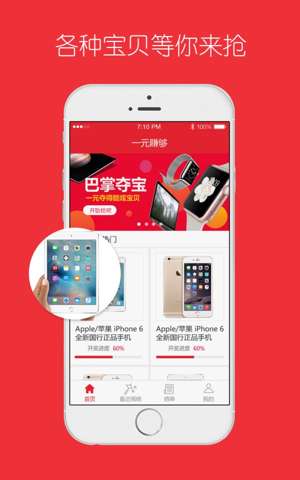 一元赚购app是一款专业的一元众筹购物应用,全场各种高大上的商品,统统只要一元钱。绝对正品保证,是您碰运气的好地方。