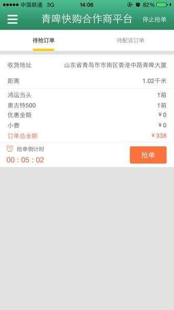 2、在线下单,青岛啤酒即可闪电配送