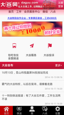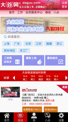 【大谷网】专为蓝领打工者提供服务的好平台。这里找工作,不用担心找不到;不用担心外地无人接送;不用担心企业里有问题无法解决。目前大谷网注册会员已突破600万,工作地点覆盖100多个城市,超过30万人成功保送工作。