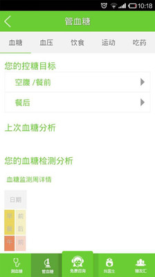 糖尿病、血糖高、高血糖人群专用血糖管理应用,通过糖友轻松上传数据,连续统计分析,在线咨询全国三甲糖尿病医生,血糖风险评估,给糖友提出个性化的运动、饮食、等健康管理方案,达到让血糖控制住、降下来、早达标、远离并发症的目的。