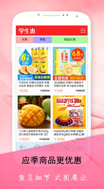 学生惠:一款手机购物软件,这个学生惠app主要偏重于学生这块,都是一些便宜又实惠的商品,而且种类繁多感兴趣的朋友可以下载试试。