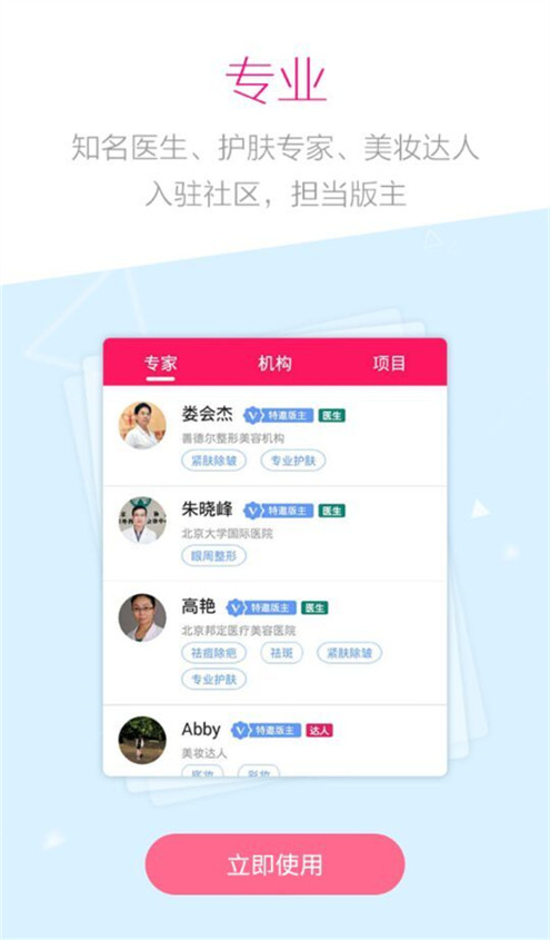 ※数百位知名的整形外科医生、皮肤激光美容科医生、美妆时尚达人入驻社区,担当版主,每日教授美容护肤妙招,为你的变美之路保驾护航。