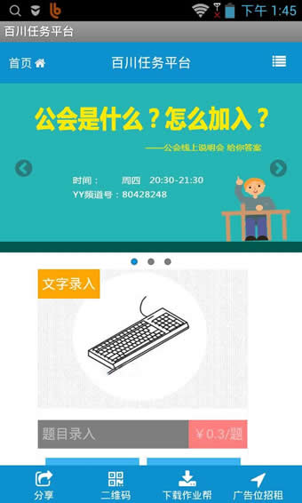 百川任务平台是百度推出的一个的在线做任务的平台,拥有众多优秀人才,可免费发布在线教育的题目分析、解答、修正等需求,提供极具创意的服务,同时为在校大学生提供兼职服务平台,让大学生可以业余时间勤工俭学。