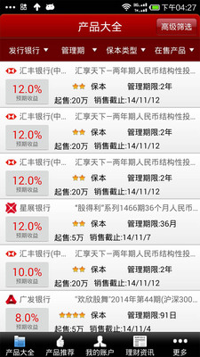 贴心的理财记账功能,方便您随时记录“关注和购买”的产品信息,理财收益率一目了然,为您的投资保驾护航。